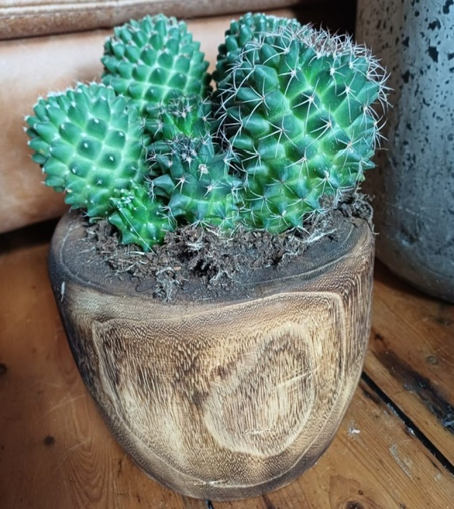 Lovely cactus in a mango wood pot. A great long lasting gift.